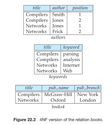 Normalized (1NF/4NF): Required for traditional relational models. Avoids certain types of redundancy. May be better in some situations (e.g., representing many-to-many relationships like takes(student, section)).