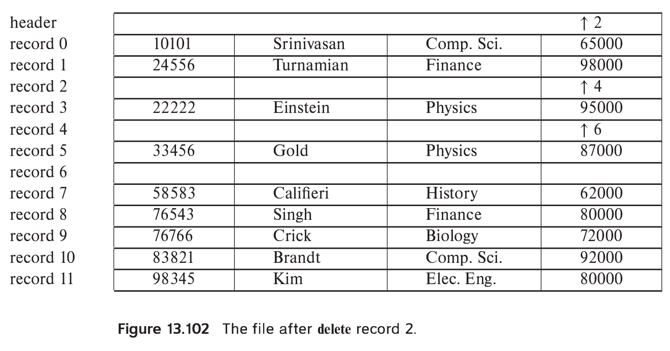 Note that the free record chain could have alternatively been from the header to 4, from 4 to 2, and finally from 2 to 6.