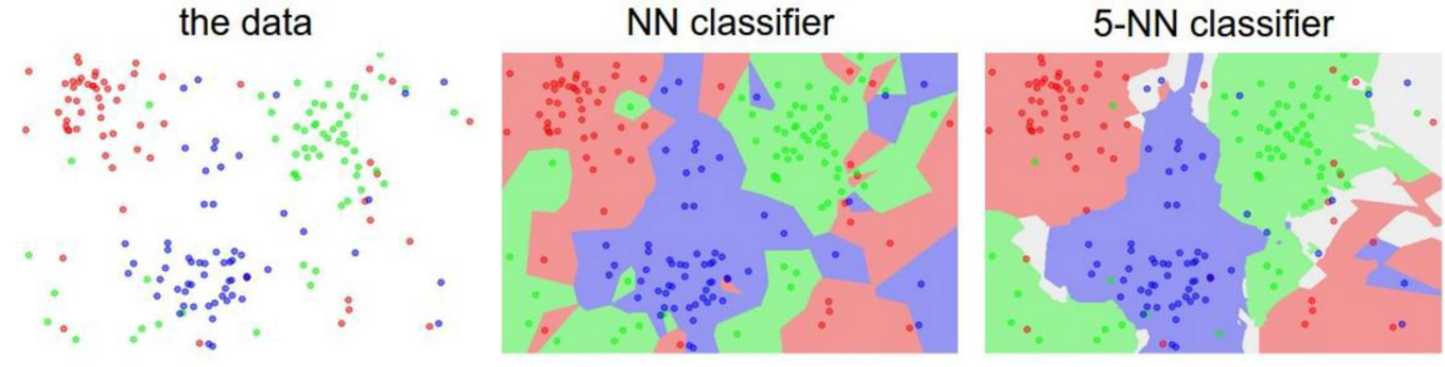 Concept: Generalization of the simple image difference classifier. Instead of just finding the single nearest neighbor, find the nearest neighbors and have them vote for the class label.