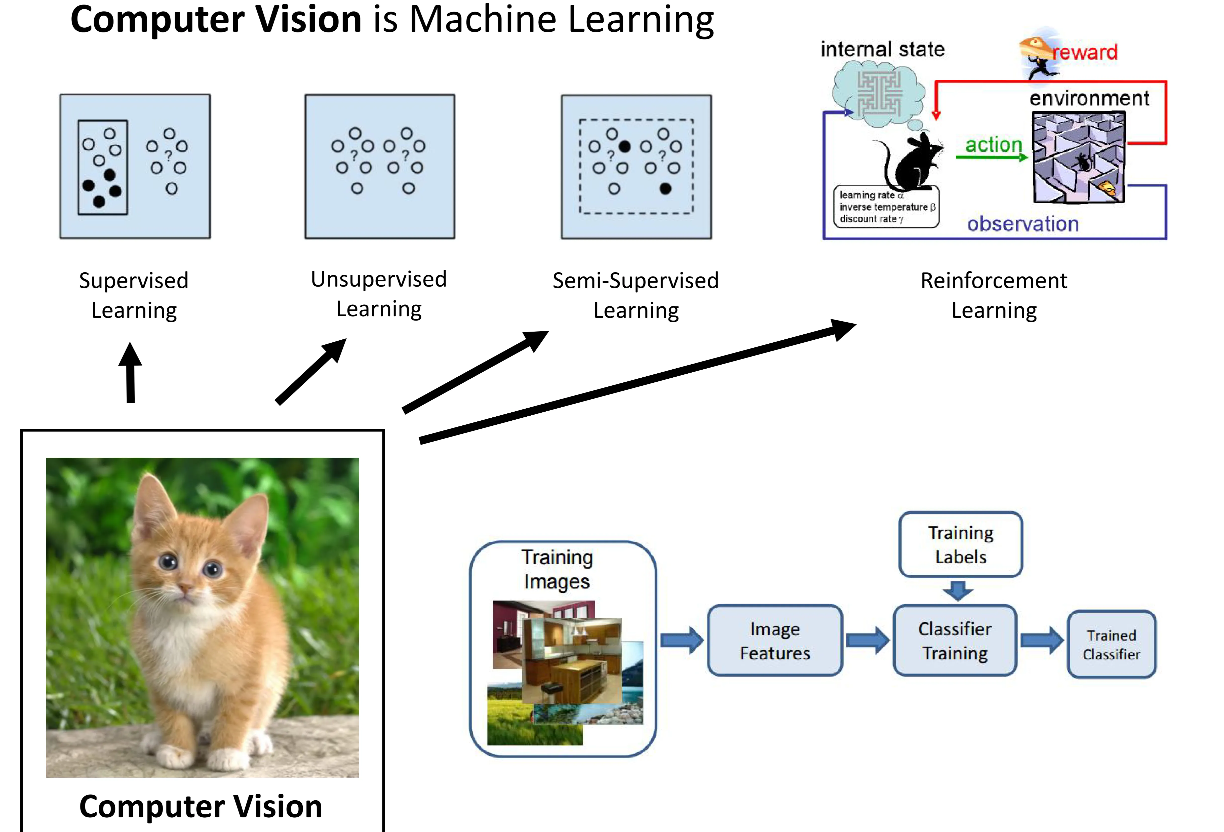 - Computer Vision tasks often utilize various Machine Learning paradigms: