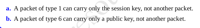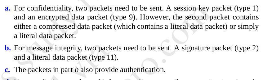 - (ii) What types of a packet should be sent in PGP to provide the following security services: