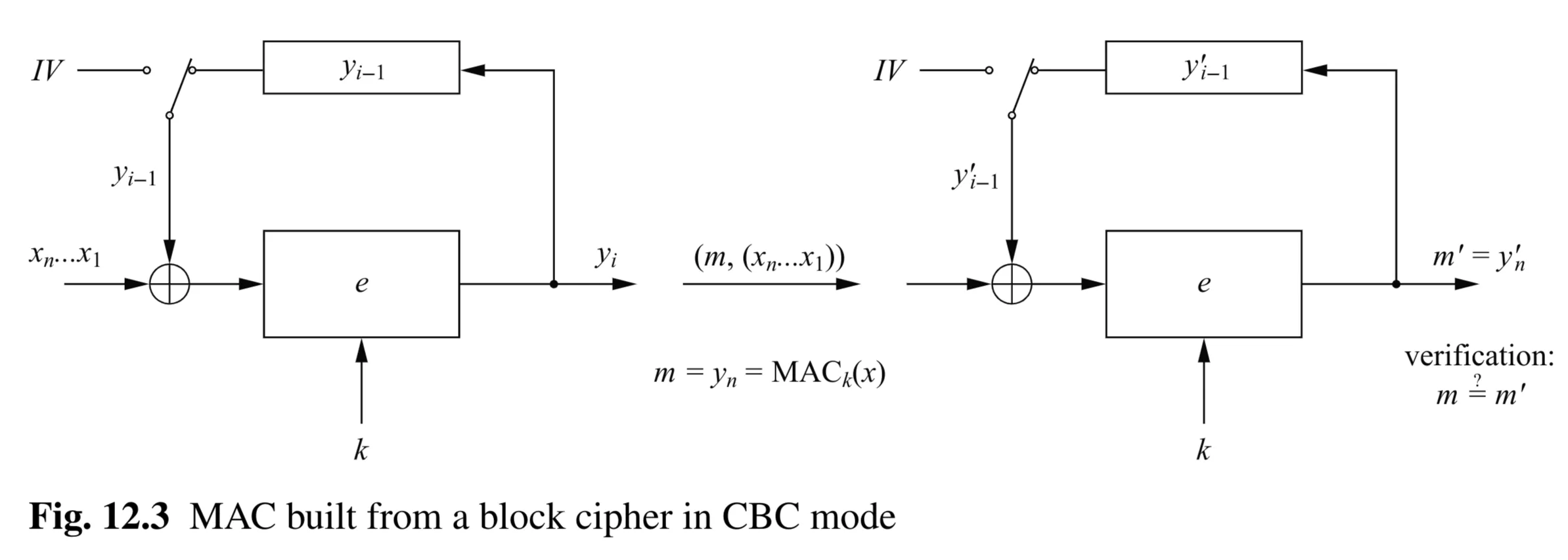 - An alternative to hash-based MACs is to use symmetric block ciphers (like AES).